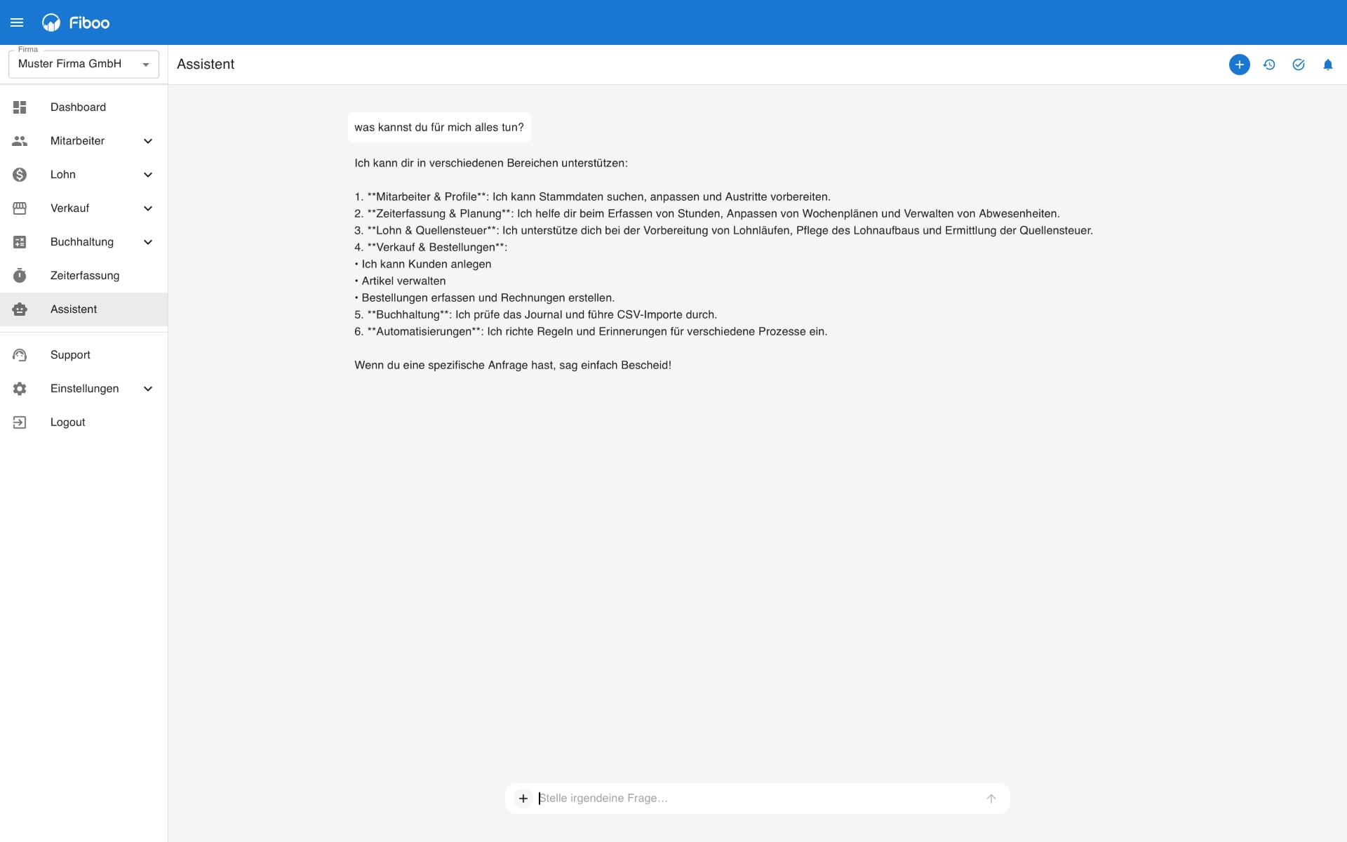 Der KI‑Assistent für Schweizer KMU: beraten, delegieren, automatisieren und proaktiv überwachen – für Lohn, Mitarbeitende, Planung und wiederkehrende Administration.