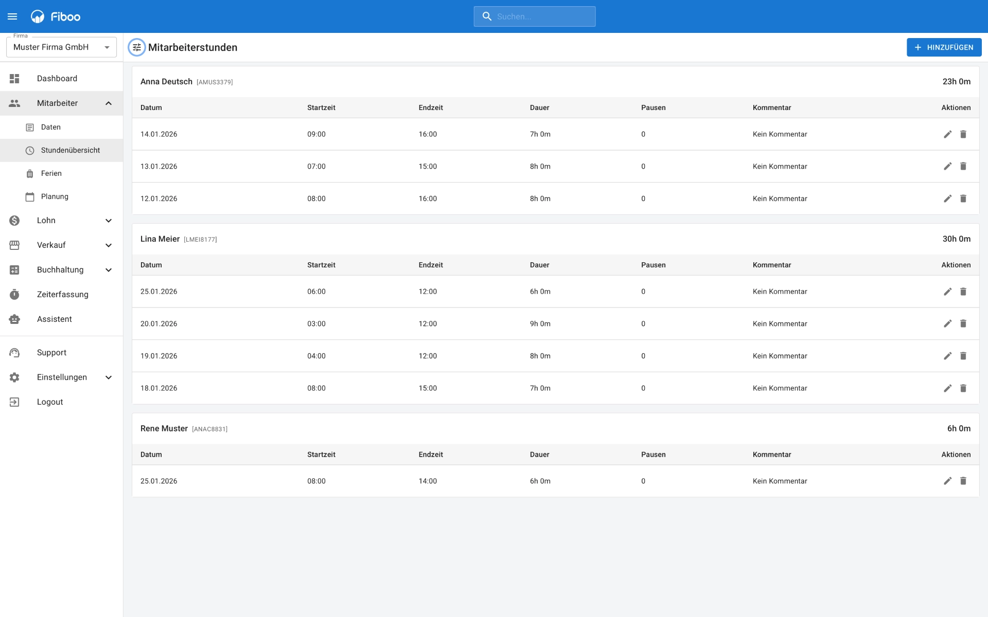 Schweizer Zeiterfassung für KMU: Arbeitszeiten erfassen, planen und direkt in den Lohn übernehmen – inkl. Plus-/Minus-Stunden, Ferien-/Feiertagsentschädigung und Schichtzulagen.